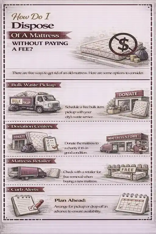 If you follow the right path, it’s absolutely possible to dispose of a mattress without paying a fee—you just need to use an option that’s truly free where you live, and avoid higher-cost alternatives such as dumpster rental prices when free disposal options are available.