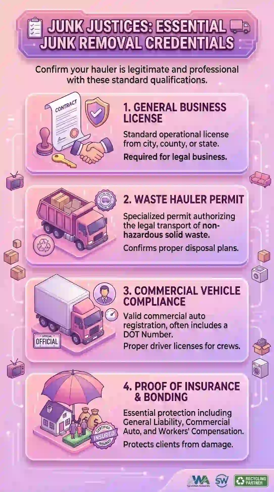 The junk removal industry has a low barrier to entry. That means anyone with a truck can hang out a shingle — and many do, without the licenses, insurance, or certifications that actually protect you as a customer.